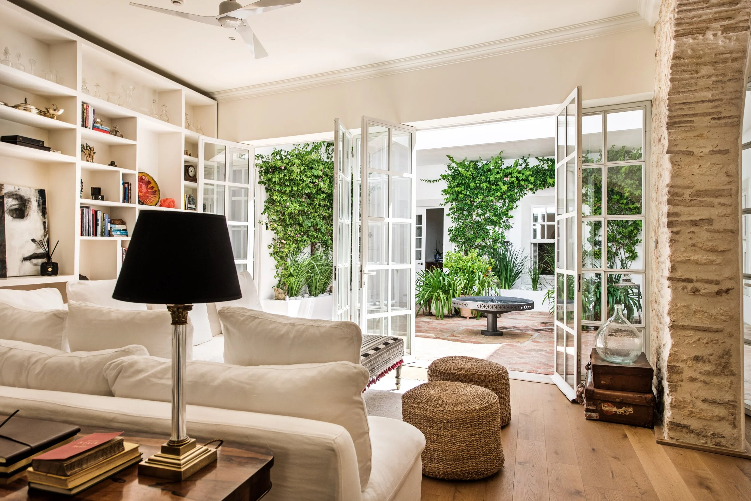 Peaceful and private, opening onto the inner courtyard with gentle natural light.